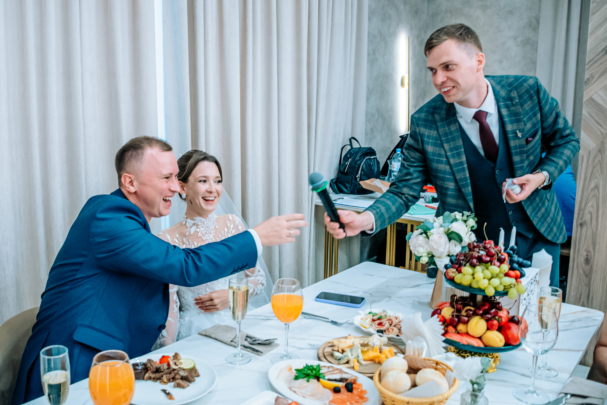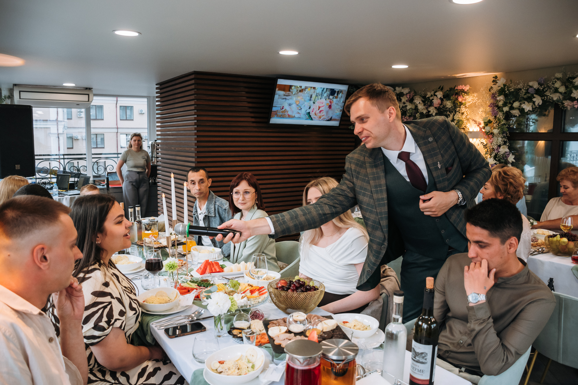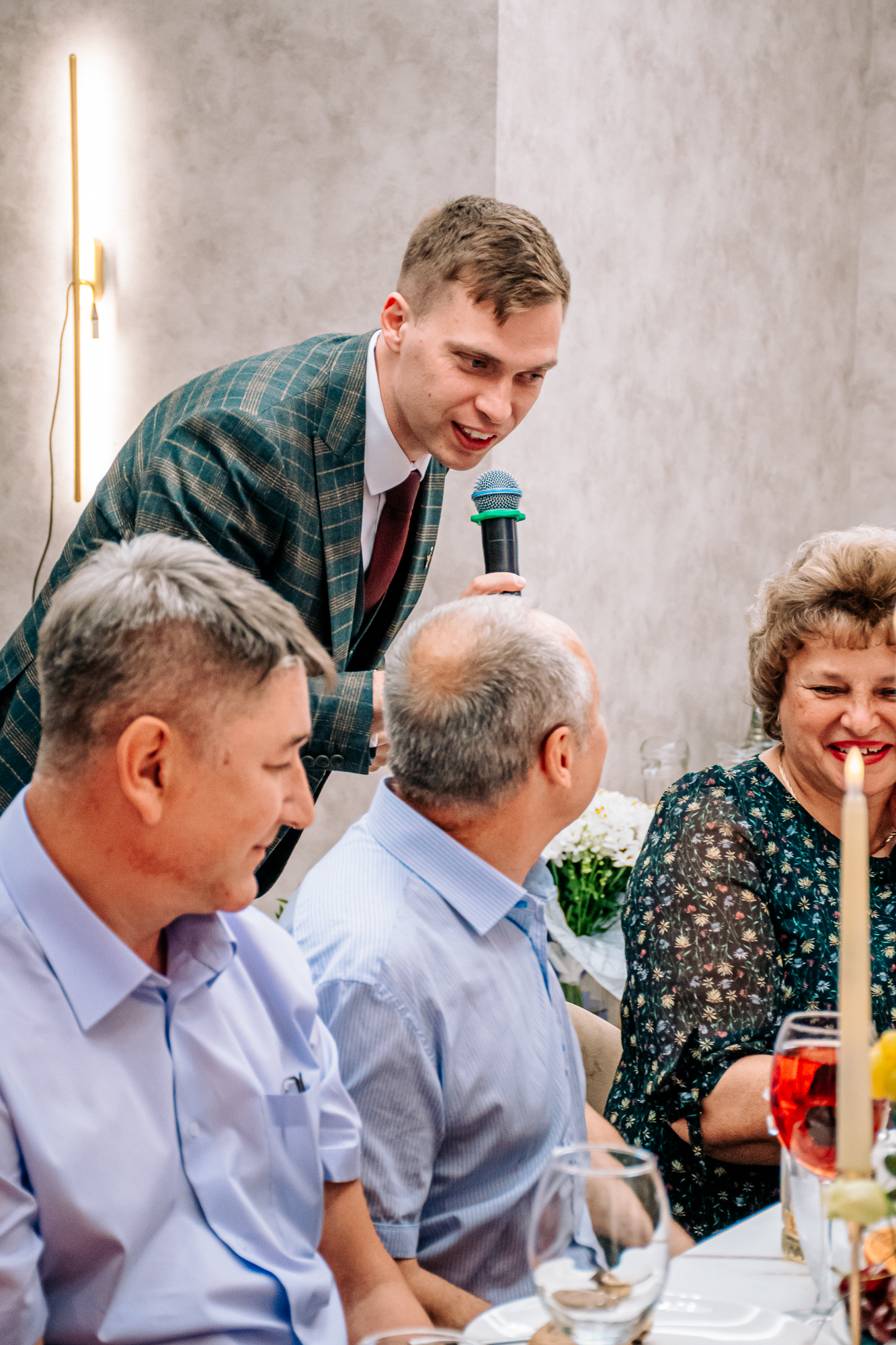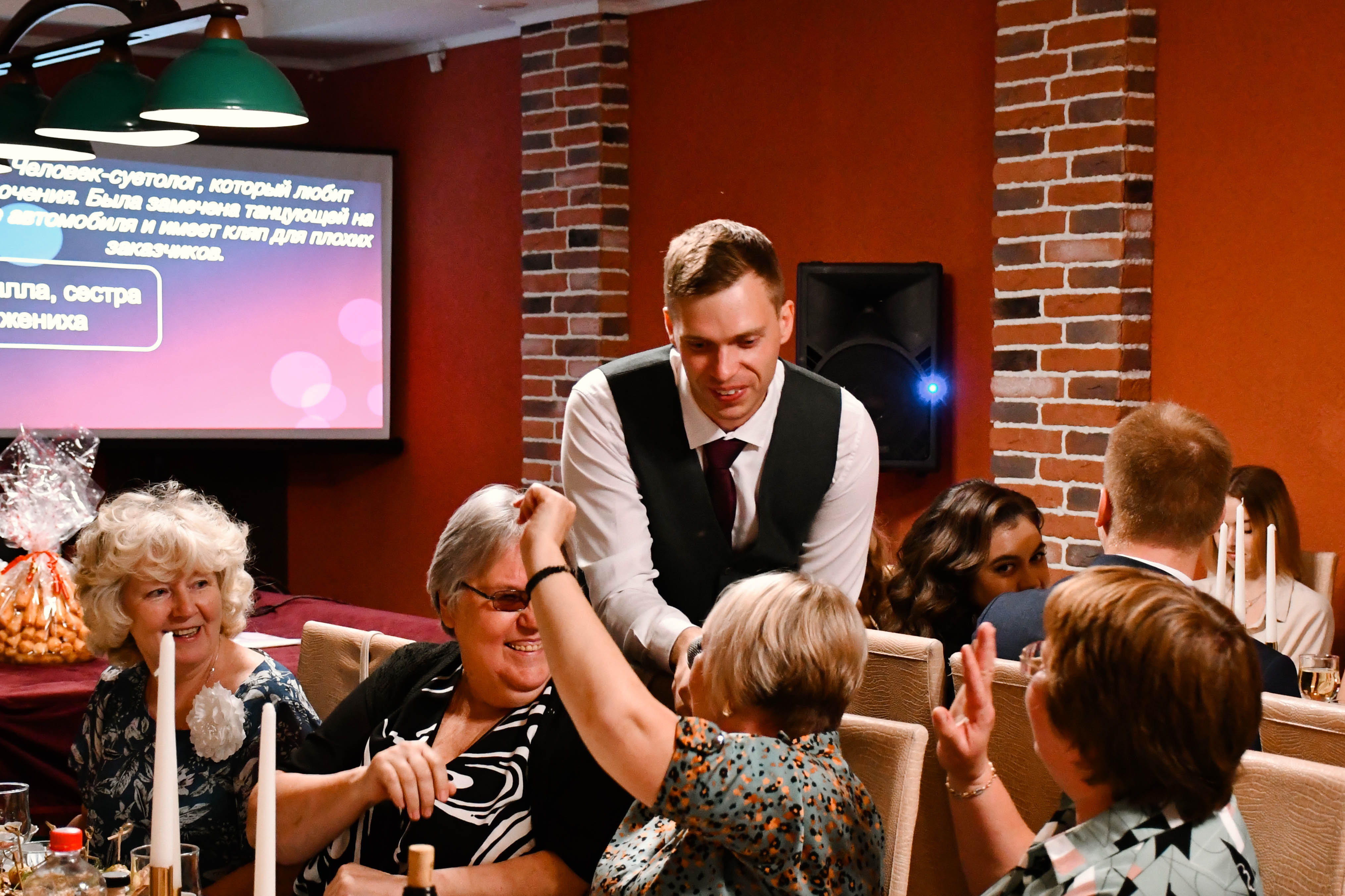 «Огромное спасибо ведущему и диджею за то, что сделали нашу свадьбу по-настоящему незабываемой! С первой минуты вы смогли создать атмосферу праздника, которая держалась до самого конца вечера. Музыкальный подбор был идеальным — от трогательных моментов до зажигательных танцев. Отдельное спасибо за организацию конкурсов и развлечений — это было весело. Спасибо за ваш индивидуальный подход, внимание к деталям и умение объединить всех гостей, независимо от возраста. Мы и наши гости остались довольны вечером. Обязательно будем рекомендовать вас друзьям и знакомым! 😉👍»